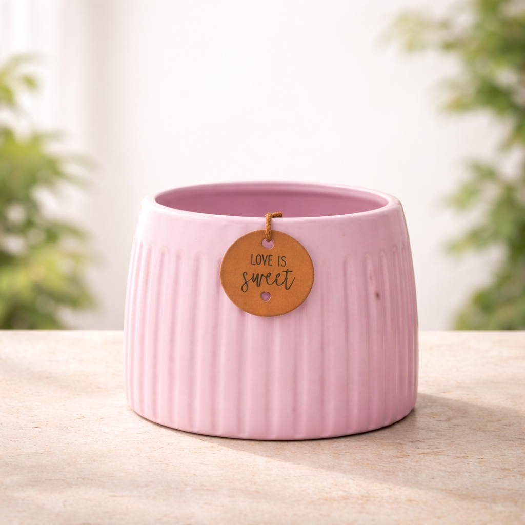 A Ceramic container combining rustic elegance with modern design. Soft pastel tones and a textured finish add effortless charm to any space.